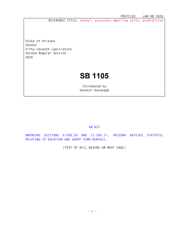 Arizona Senate Bill Targets ADU Short-Term Rentals