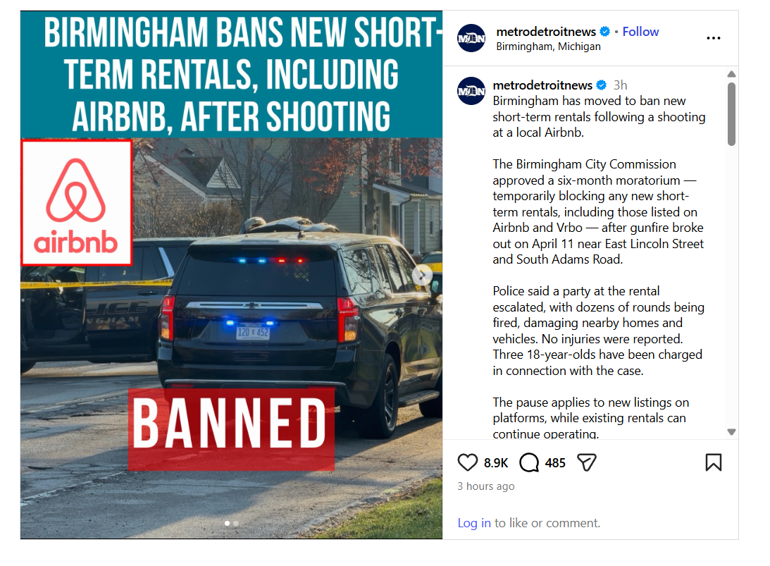 Birmingham Pauses STR Licenses After Shooting: Six‑month moratorium follows Airbnb gunfire incident that damaged homes and cars but left residents unharmed