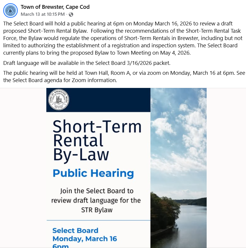 Brewster Residents Debate Draft STR Bylaw, Fees, and Inspections at Public Hearing