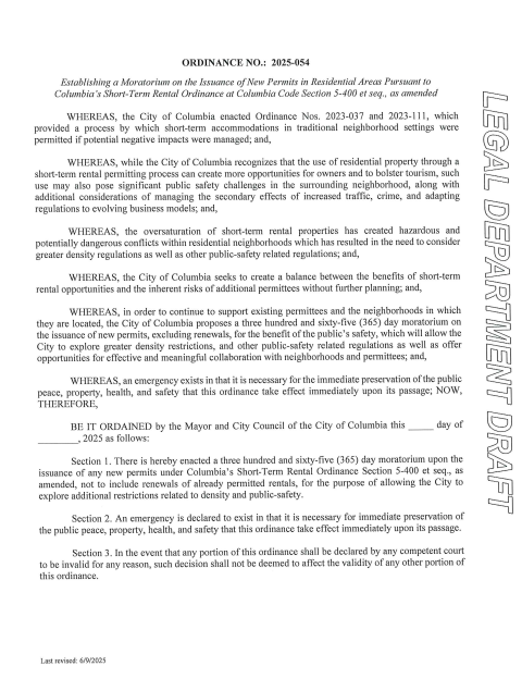 On Tuesday, June 10, city council members voted to approve a one-year moratorium on new short-term rental (STR) permits, following a tragic shooting at an Airbnb in the Elmwood Park neighborhood on June 6. The incident became a flashpoint in ongoing concerns about safety, enforcement, and accountability in Columbia’s growing STR market.