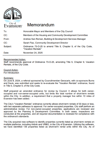 Throughout the conversation, the emphasis has been on striking a balance—supporting responsible short-term rental operators while addressing neighborhood concerns about noise, safety, and housing availability. The upcoming discussions are expected to include how license tracking will work, what enforcement will look like, and how Evanston will adapt if STR demand grows after the cap is set.