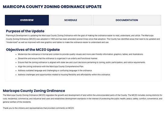 The updated zoning ordinance is now available through the Maricopa County Planning and Development Department.