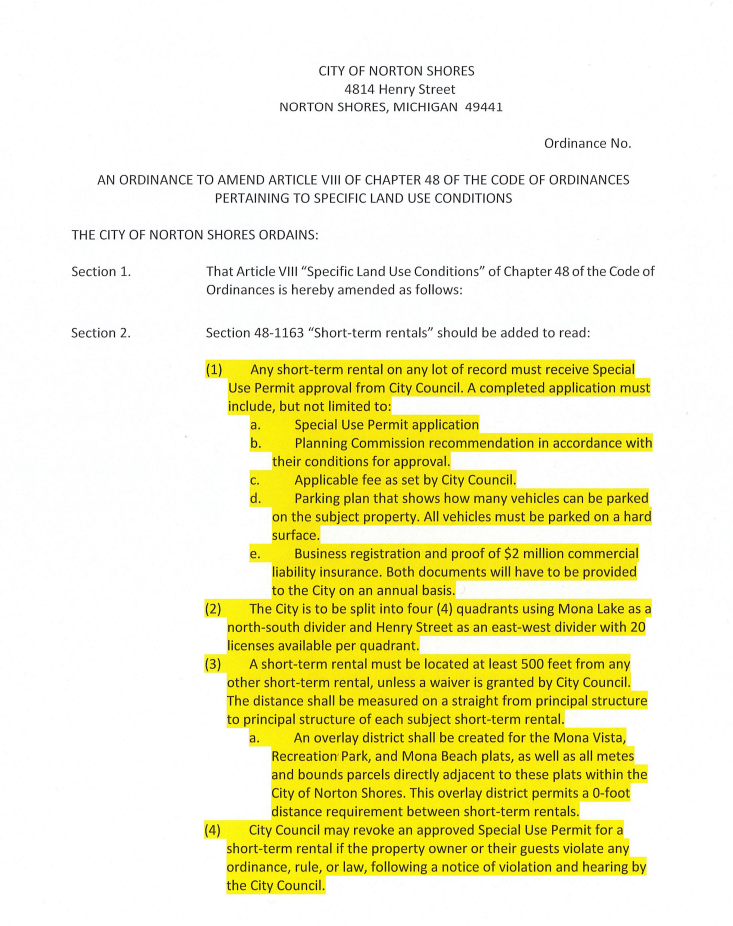 Norton Shores Council Sends STR Ordinance Back for Revisions