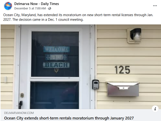 Another Year on Hold: Ocean City Extends Its STR Timeout