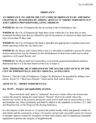Fair Play in Simpsonville: City Rolls Out Its First STR Rulebook