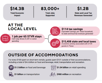 Indeed, that footprint is huge. A Tourism Economics study estimated that STRs generated $14.3 billion in sales and $1.2 billion in tax revenue across Texas in 2023, supporting more than 83,000 jobs. Those numbers make a compelling case for the industry’s importance, especially with Dallas preparing for the World Cup next summer—a time when rental demand will be sky-high.