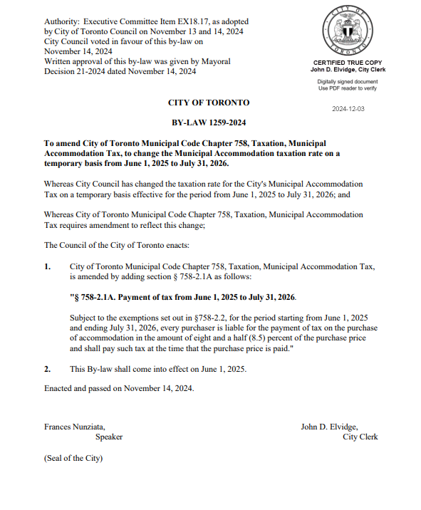 Toronto City Council has approved a temporary increase to its Municipal Accommodation Tax, raising it from 6% to 8.5% to help fund the city’s 2026 FIFA World Cup hosting costs.