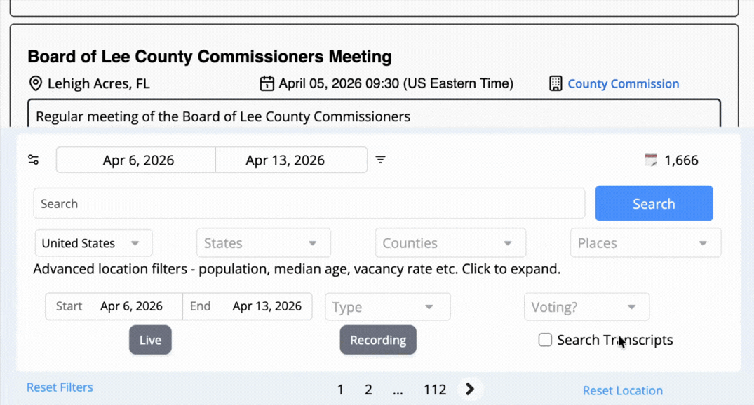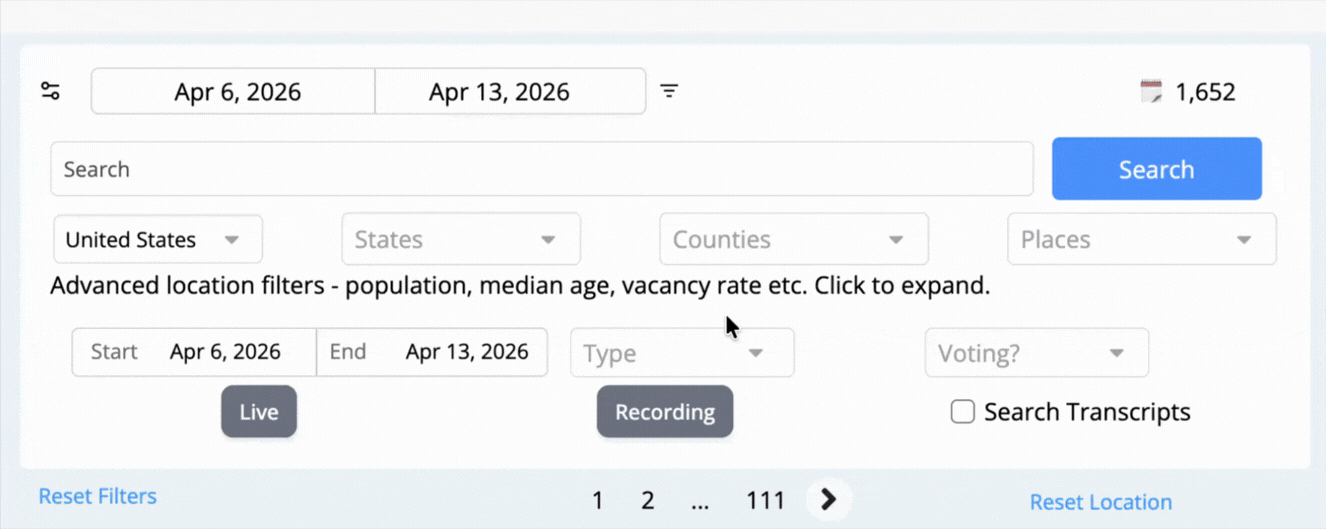 Want to narrow things down by community profile? Recent changes in Calendar and Updates added support for advanced location filters across U.S. locations covering population, median age, housing vacancy rate, housing units, and household income.