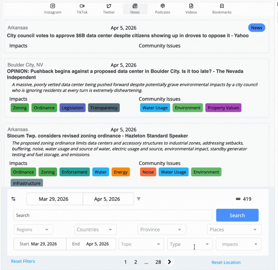 Data centers are coming up more and more in policy conversations, and STRisker is keeping up with that. Filtering by data center is now available across both Signals News and Updates!