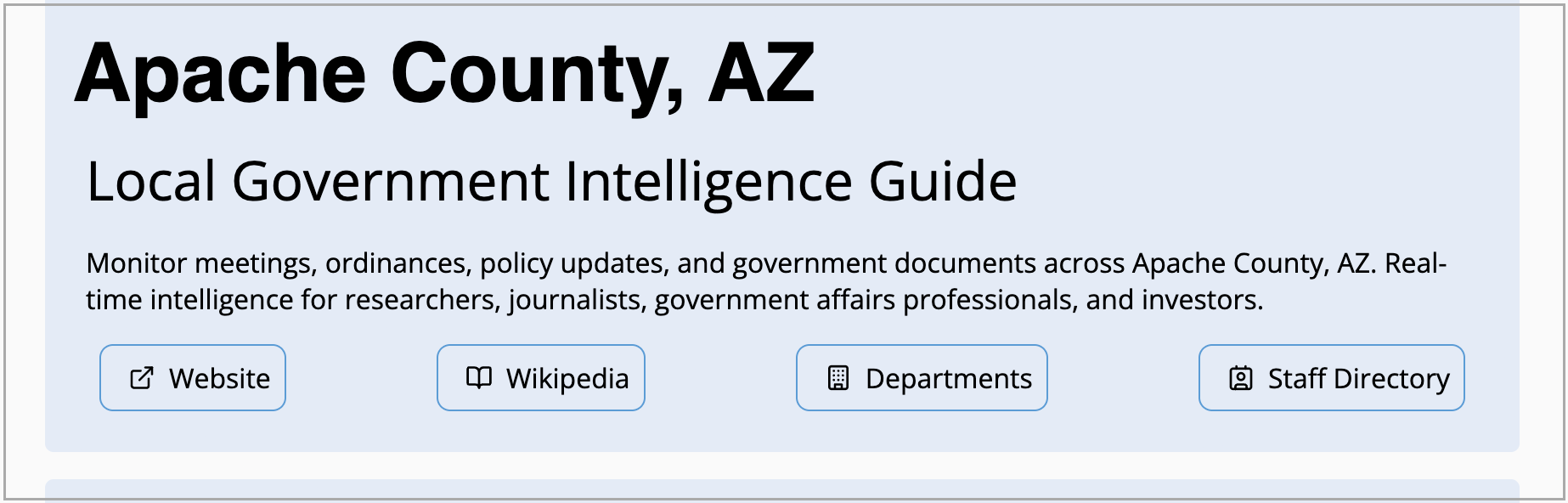 Header in Location Guides got richer with the addition of external resources including website, Wikipedia, department and directory links.