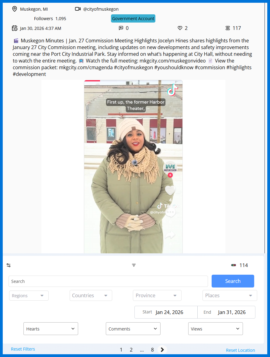 Social posts from confirmed local government accounts are now labeled with a “Government Account” tag across Twitter, Instagram, and Tiktok posts. This makes it easier to identify and prioritize on signals as they arise.