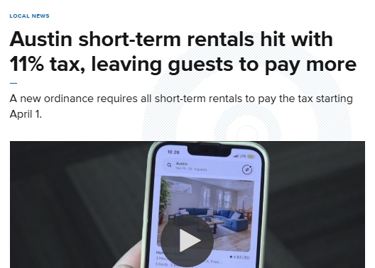 Starting April 1, Austin began enforcing an 11% hotel occupancy tax on all short-term rentals, requiring platforms like Airbnb and Vrbo to collect the fee, which many hosts say is now being passed to guests.
